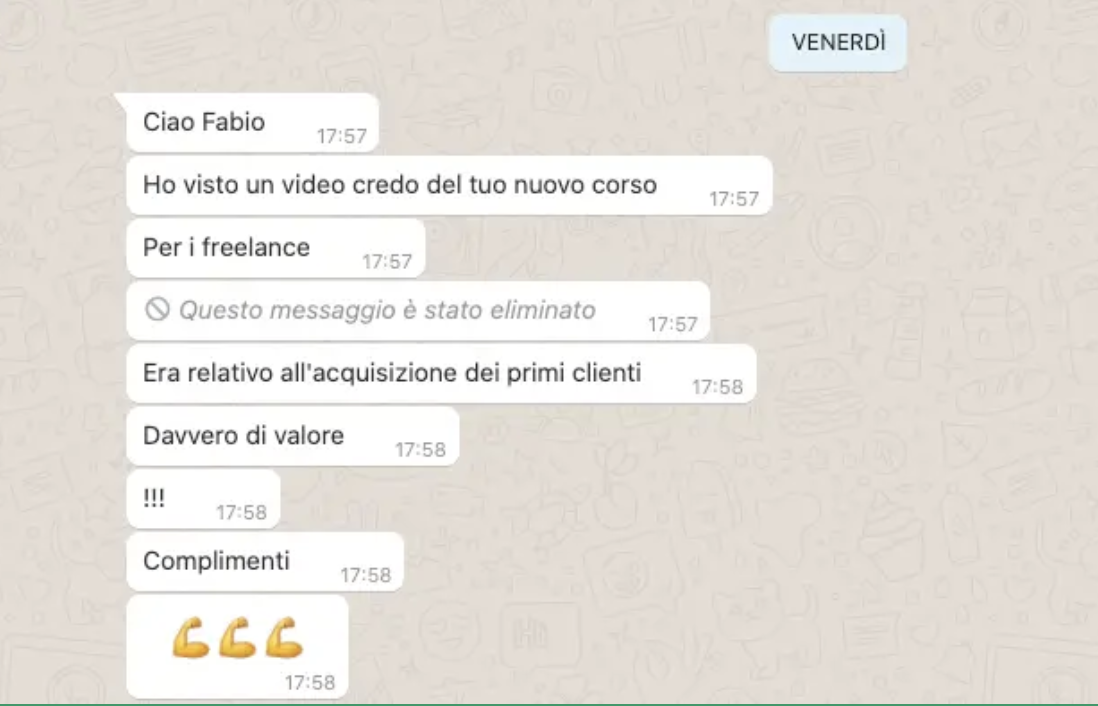 Grazie a Fabio ho conosciuto molti nuovi aspetti del mondo freelance di cui ne ero ancora a conoscenza e dei consigli che potrò utilizzare per rendere unico il mio lavoro.